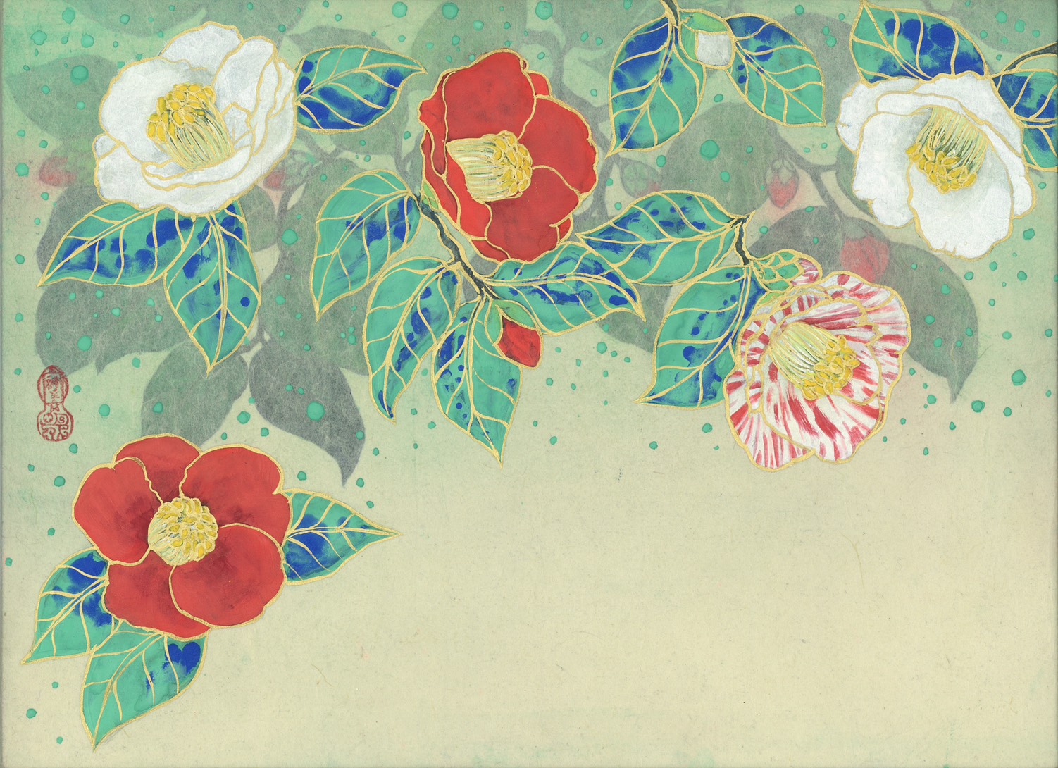 日本画に興味がありましたが、手が出せずにいました。でも、優しい雰囲気のこの作品は家族からも評判が良く、リビングが明るくなりました。季節を感じる素敵な作品を、これからも楽しみにしています。